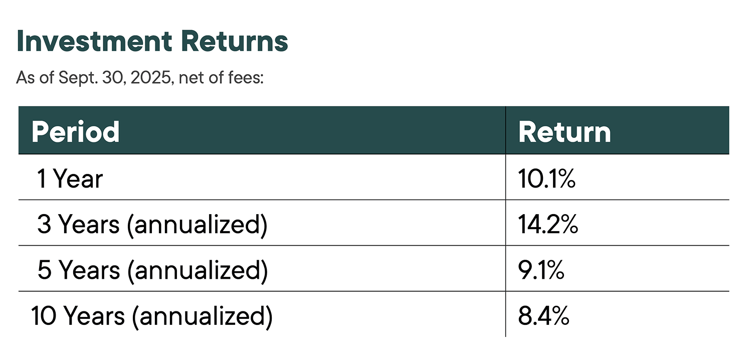 Our continued contribution to a thriving southeast Michigan relies on having a sustainable financial foundation, guided by our values of operational excellence, trust and integrity. During 2025, in sync with our 10-year strategic plan, we implemented several changes to our investment program that position us to move forward with confidence as a responsible steward of our community’s philanthropic dollars.