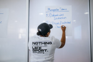 Each course of the workshop series featured a key partner that facilitated interactive training. The Mac Parkman Foundation facilitated a discussion to understand the risks of mental illness from early exposure to youth sports-inflicted trauma. The Center for Healing and Justice through Sport led high-energy group activities that taught participants about the emotional development of youth and how to navigate coaching with empathy. The Positive Coaching Alliance provided insight into ways to develop competitors and mental wellness through positive coaching. The workshop series underscored the importance of social-emotional wellbeing both on and off the court and provided coaches with tools to positively impact their organizations.