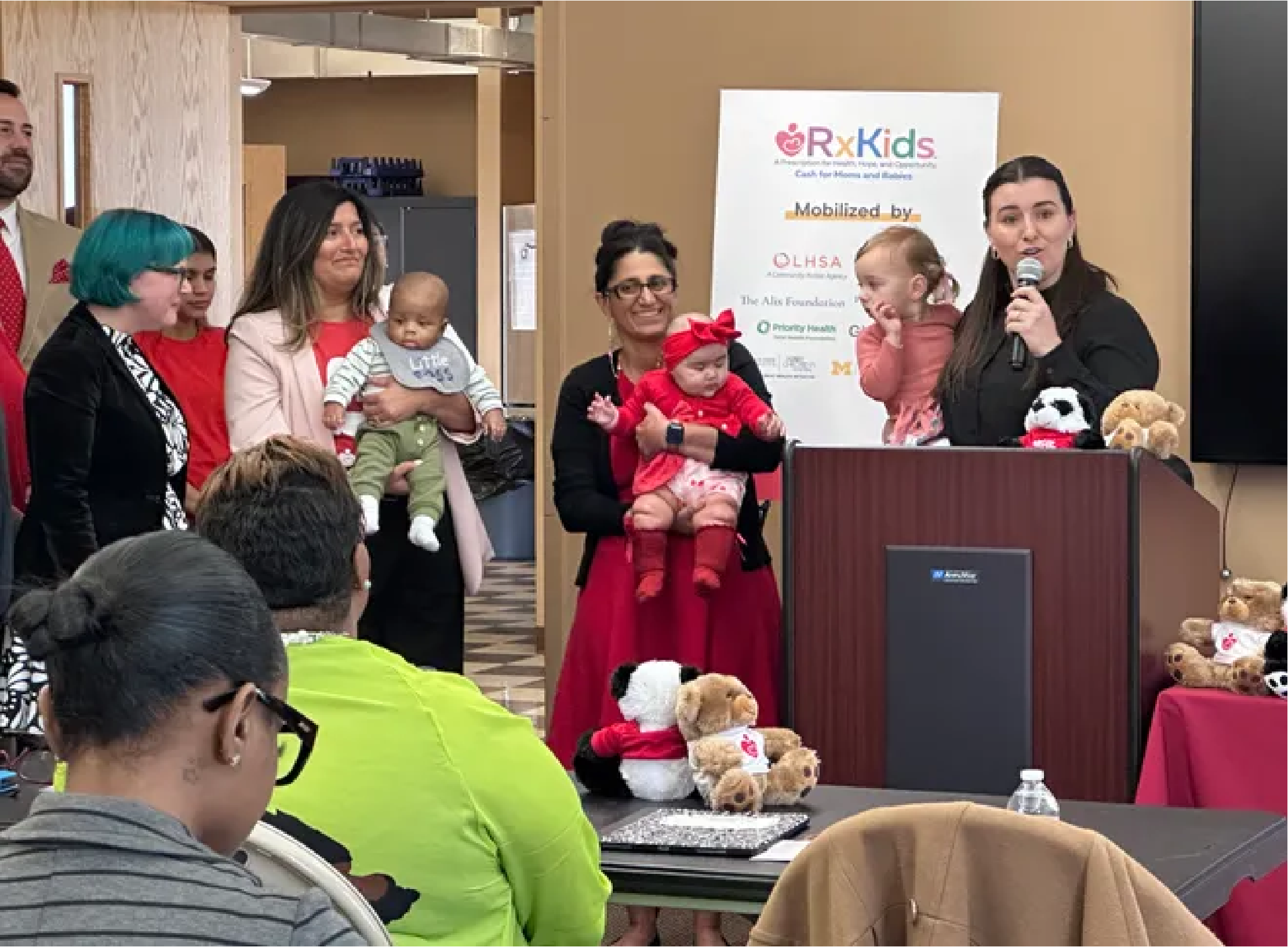 “Rx Kids really empowers Pontiac moms with cash prescriptions so that they can spend just a little bit less time worrying about the first year expenses and focus on the hardest and most wonderful job there is, caring for and loving babies,” said Erin Casey, director of the Pontiac Funders Collaborative, an initiative of the Community Foundation for Southeast Michigan, which contributed a $1 million grant to Rx Kids in Pontiac.
