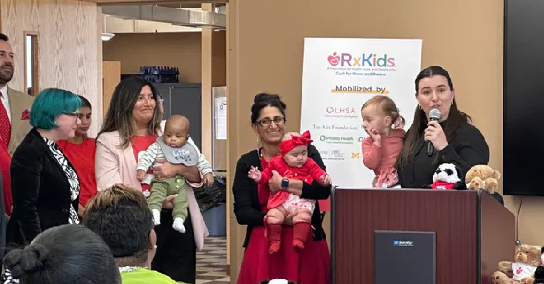“Rx Kids really empowers Pontiac moms with cash prescriptions so that they can spend just a little bit less time worrying about the first year expenses and focus on the hardest and most wonderful job there is, caring for and loving babies,” said Erin Casey, director of the Pontiac Funders Collaborative, an initiative of the Community Foundation for Southeast Michigan, which contributed a $1 million grant to Rx Kids in Pontiac.