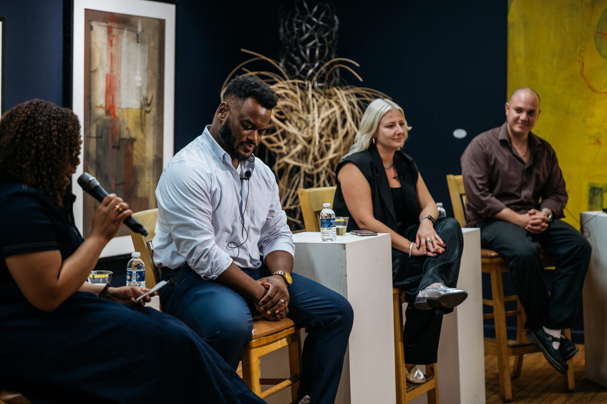 For the third consecutive year, the Inclusive Arts Fund celebrated Detroit’s Month of Design with Inclusion by Design, held on September 17, at the N’Namdi Center for Contemporary Art. The evening featured a dynamic panel with Abel Gonzalez (MOCAD), Paulina Petkoski (PLAYGROUND DETROIT) and John Sloan III (GhostLight Arts Initiative), who shared their insights on how creative practices are shaping Detroit’s future. Alongside the discussion, guests enjoyed a powerful spoken word performance by Jassmine Parks from InsideOut Literary Arts, a live DJ and light bites creating an atmosphere that celebrated the energy and vibrancy of Detroit’s art community.